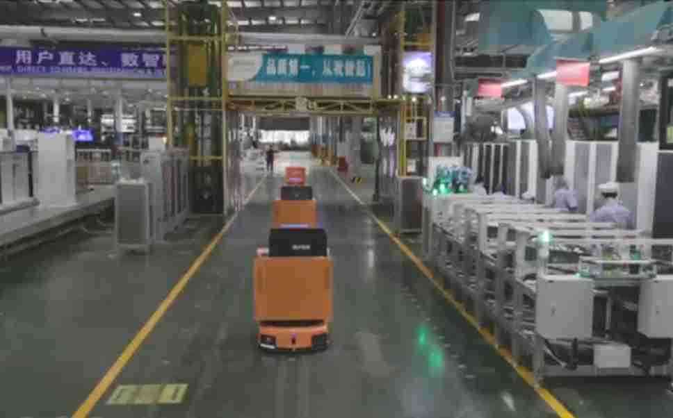 为车载冰箱物流配送打造的智能解决方案,,,包含产中物流通过潜伏举升AMR搬运至线边,,,产后成品物流智能仓储,,,,流程包含产中物流智能齐套入库,,,,线边安灯叫料AMR智能配送至线边,,,成品入库、、、、出库,,,通过无人堆高车机器人,,,,智能仓储管理替代人工作业管理,,,,实现更高存储、、、、更高效率、、、、更具柔性化的解决方案。。。